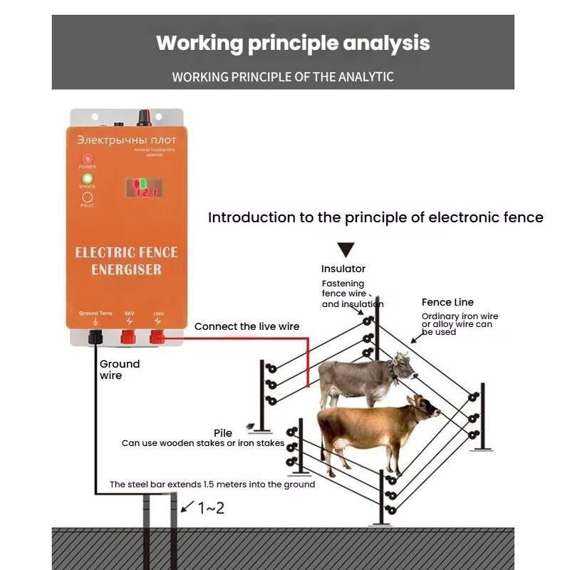 40km Alarm EU Plug 12V Electric Fence for Livestock High Voltage Pulse Farm Electric Poultry Equipment