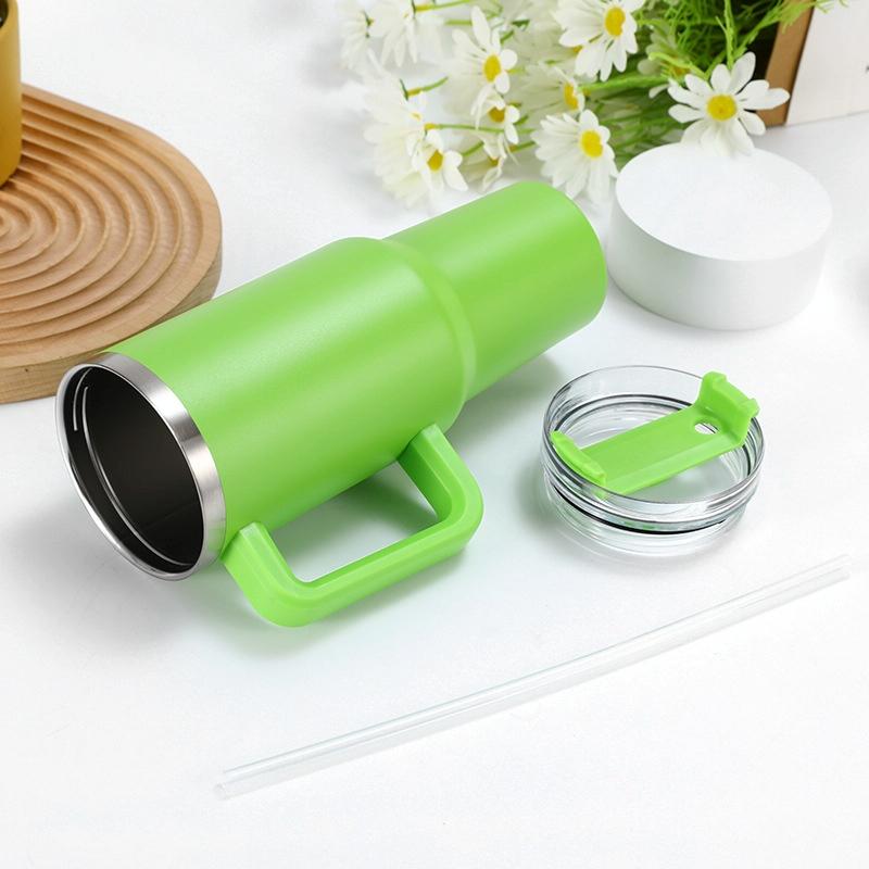 1. 40 ounces, with handle, lid and straw, double-layer vacuum insulation technology, can keep hot for 6-12 hours