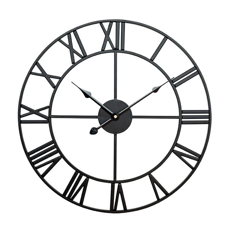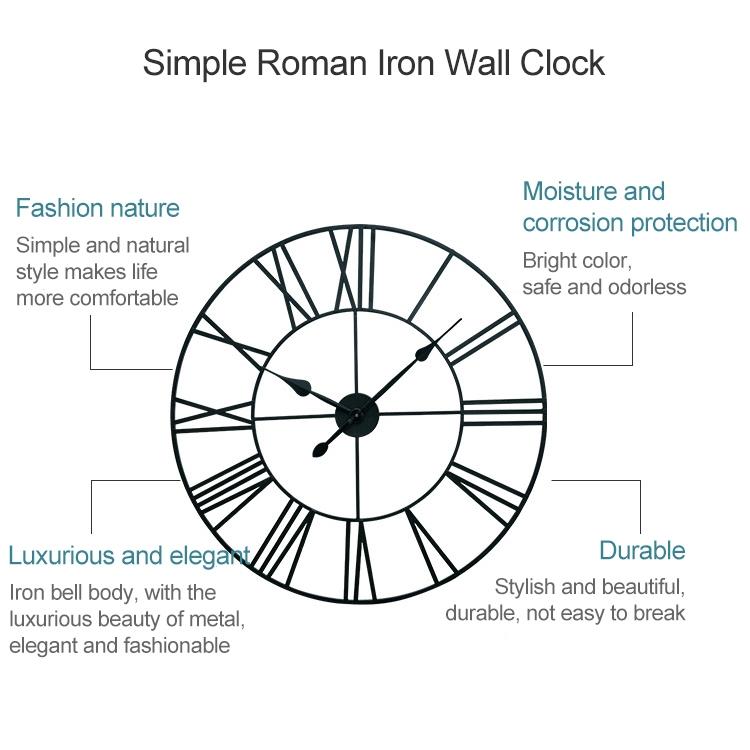 45cm Retro Living Room Iron Round Roman Numeral Mute Decorative Wall Clock (Black)