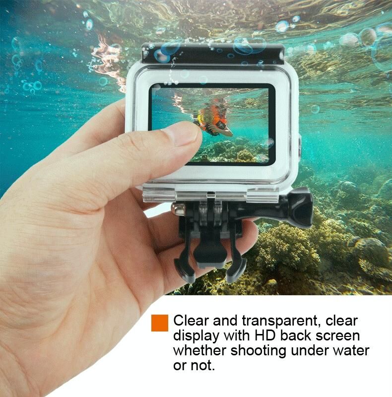 2. The shell adopts high quality PC and ABS material, professional design and manufacturing, thus has good waterproof performance up to 45m depth of water. And bare camera body waterproof up to 10m