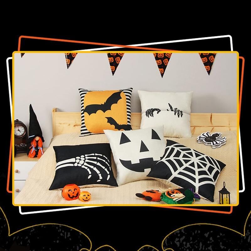 Μαξιλαροθήκη 45x45cm με σχέδιο Halloween, ψηφιακής εκτύπωσης (Φάντασμα), χωρίς εσωτερικό μαξιλάρι.