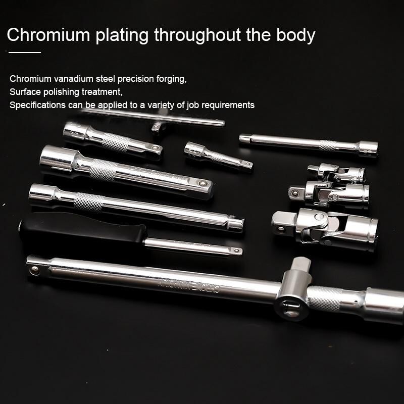 5. The product includes: screwdriver sleeve (4/5.5/7mm), cross (1/2/3mm), meter (1/2/3), hexagon (3/4/5/6/7mm) , flower shape (10/15/20/25/30/40mm), Allen wrench (1.5/2/2.5mm), Hex socket (4/4.5/5/5.5/6/7/8/9/10 /11/12/13/14mm), universal joint, 2 inch short connecting rod, 4 inch long connecting rod, elastic connecting rod, 1/4 ratchet wrench, 1/4 square rotating rod, 1/4 sliding rod, rotating Head connector