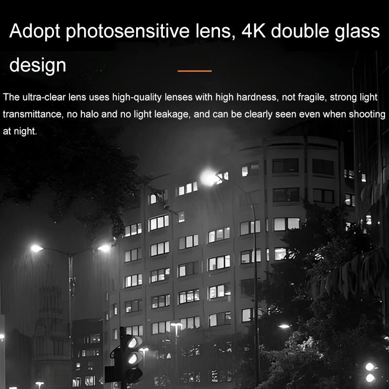 5. Adopt a photosensitive lens, 4K double glass design, high hardness, not fragile, strong light transmittance, no halo, no light leakage, and can be clearly seen even when shooting at night