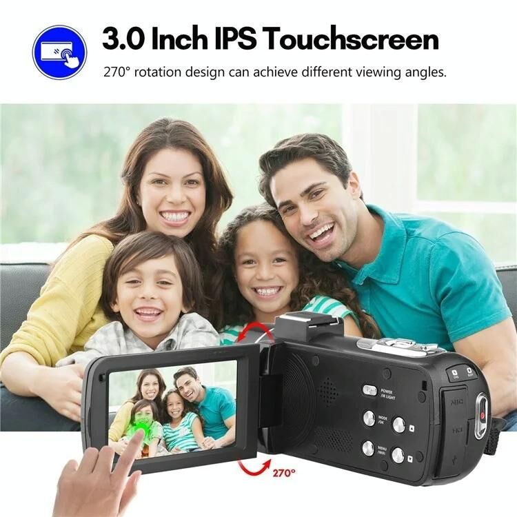 2. The 3.0-inch IPS touchscreen provides you with a smooth color gradient and clear image details. 270-degree rotation design can achieve different viewing angles, you can point the lens at yourself to record video