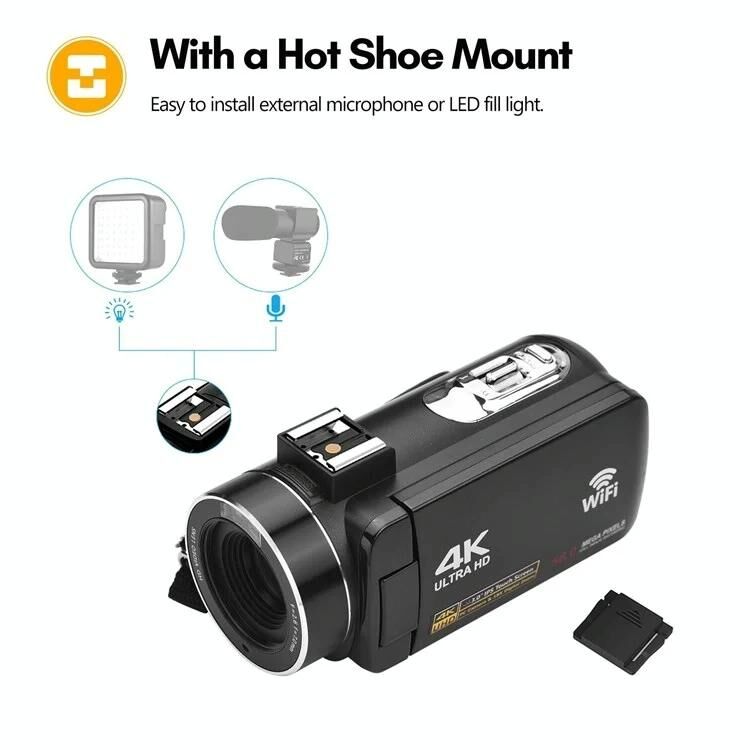 4K Digital Video Camera 3 Inch IPS Touch Screen 56MP 18X Digital Zoom WiFi Camcorder, Spec: Set 2