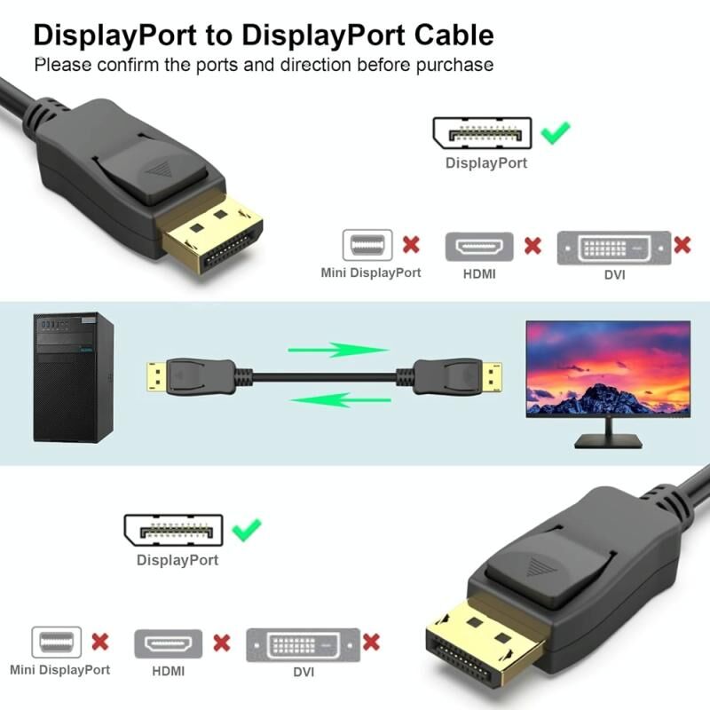1.Bidirectional DisplayPort to DisplayPort Cable(NOT HDMI, NOT DVI) 6 Feet Black. Connect a DisplayPort compatible PC to a monitor or projector with DisplayPort. Or Connect a DisplayPort compatabile PC and laptop to a monitor with Displayport.