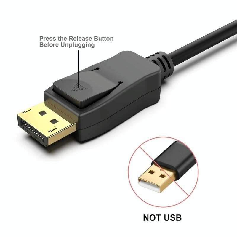 5.DisplayPort connector with latches provides a secure connection with a release button that must be depressed before unplugging.