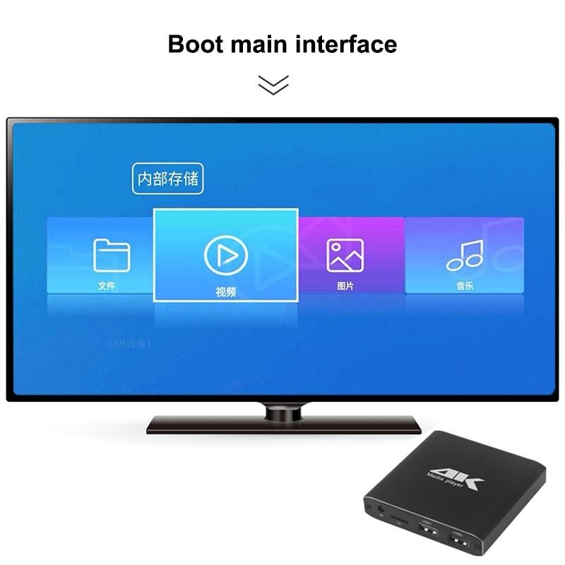 Υποστηρίζει ανάλυση 4K full HD έως 4096X2160P, μορφές MP4, MKV, TS, M2TS, MTS, TP, TRP, WMV, IFO, ISO, VOB, DAT, AVI, MPG, MOV, RM, RMVB, DIVX, XVID, FLV, F4V, blue και άλλες, καθώς και παρουσιάσεις PPT.
