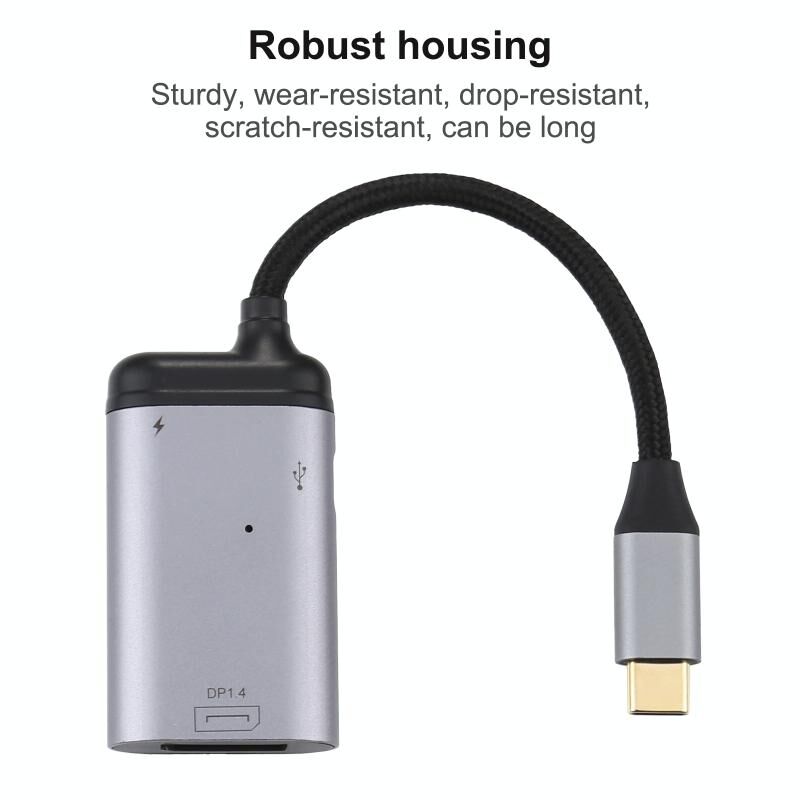 7. 1x μεγάλο θηλυκό DP, 1xPD, 1x θύρα δεδομένων τύπου-c (USB 2.0, 1x μπλε φωτεινή ένδειξη ισχύος)