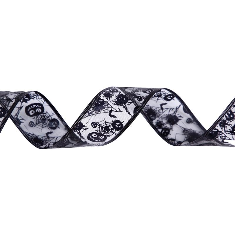 4m Halloween Decoration Gold-stamped Cartoon DIY Bow Ribbon(Black Pumpkin Spider Web)