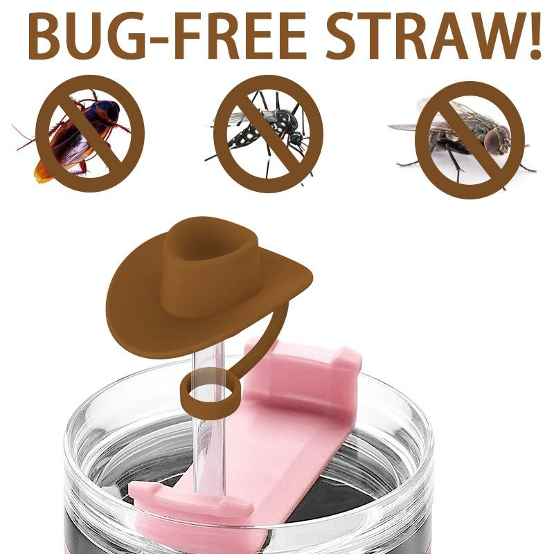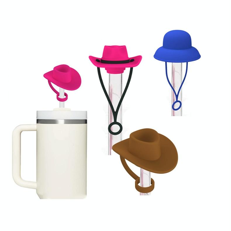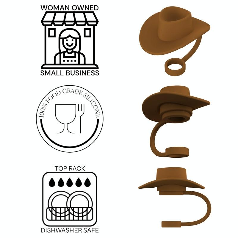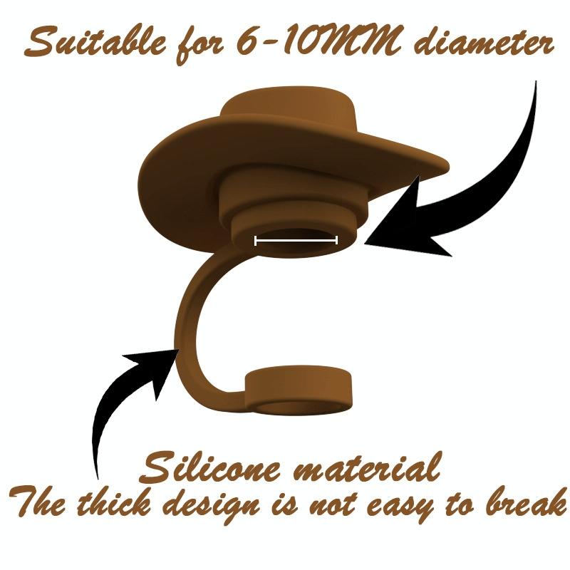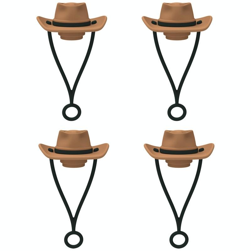 4τμχ Καπάκια Σιλικόνης για Καλαμάκια, Στυλ: Καουμπόικο Καπέλο με Κορδόνι (Καφέ)