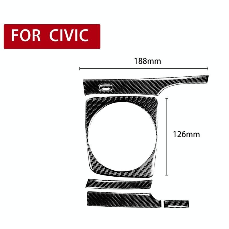 5 in 1 Car Carbon Fiber Manual Gear Panel Set Decorative Sticker for Honda Civic 8th Generation 2006-2011, Right Drive