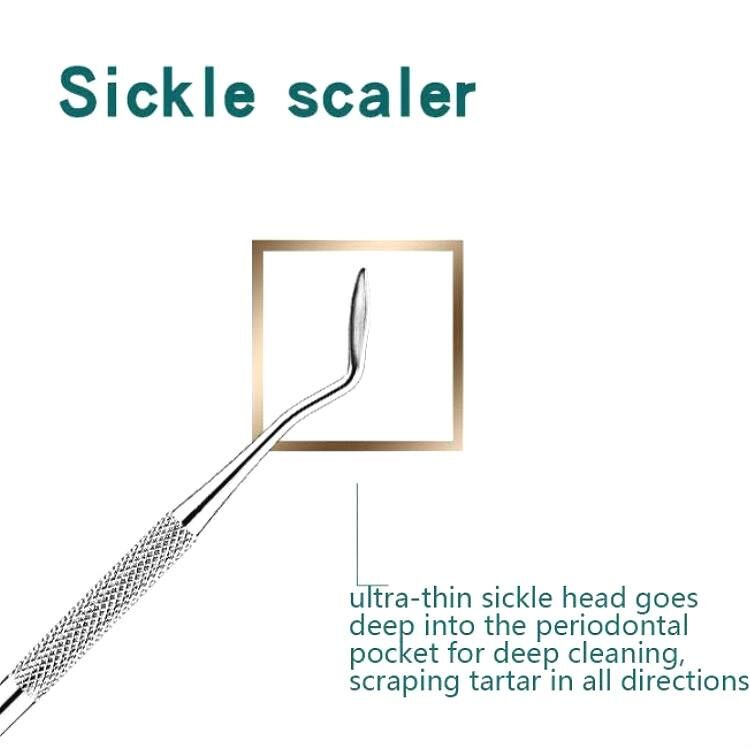 -Κλιμάκωση σε σχήμα δρεπανιού: εξαιρετικά λεπτή κεφαλή δρεπανιού εισχωρεί βαθιά στην περιοδοντική θήκη για βαθύ καθαρισμό, ξύνοντας την οδοντική πέτρα προς όλες τις κατευθύνσεις