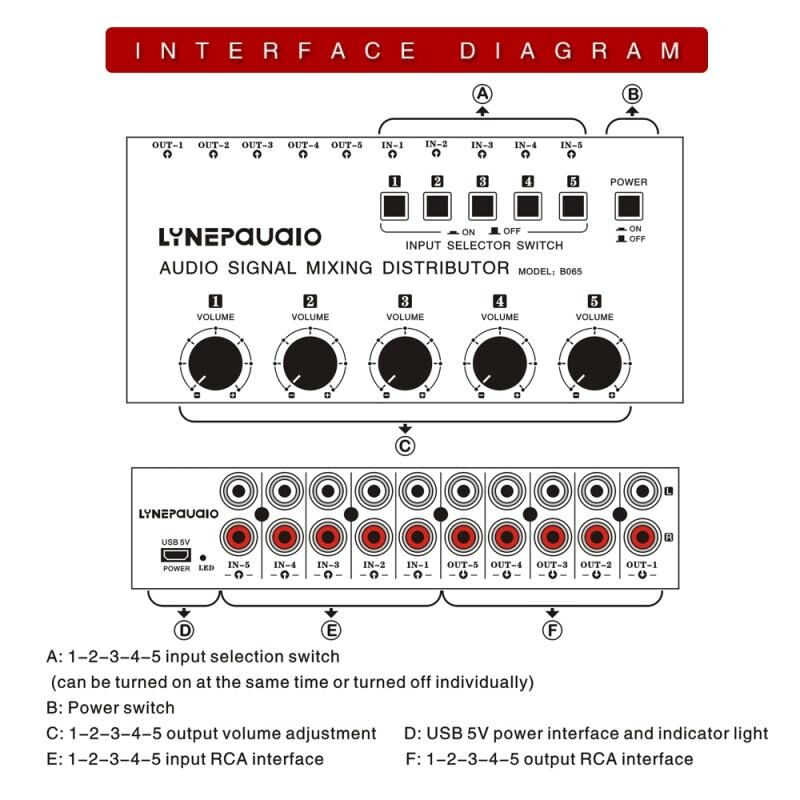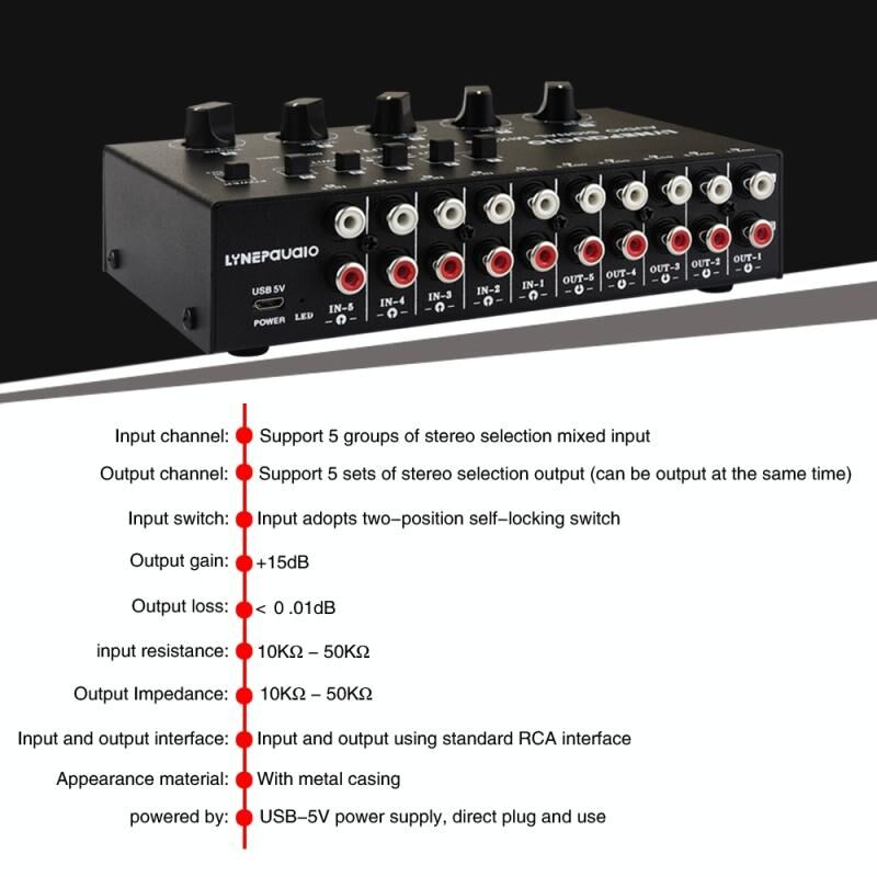 1. B065 5 σε 5 συσκευή διανομής ανάμειξης σήματος ήχου συχνότητας εισόδου/εξόδου x 1