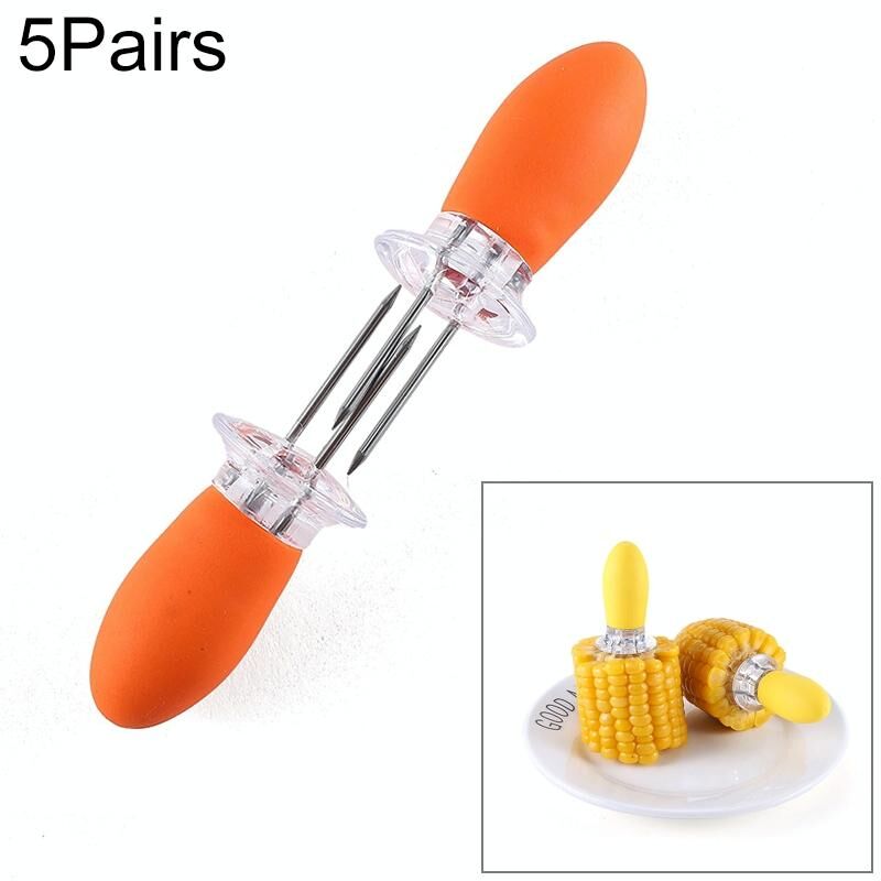 5 ζεύγη υπαίθρια μπάρμπεκιου από ανοξείδωτο χάλυβα καλαμπόκι Πιρούνι φρούτων Πιρούνι καλαμποκιού Συσκευή καλαμποκιού (πορτοκαλί)