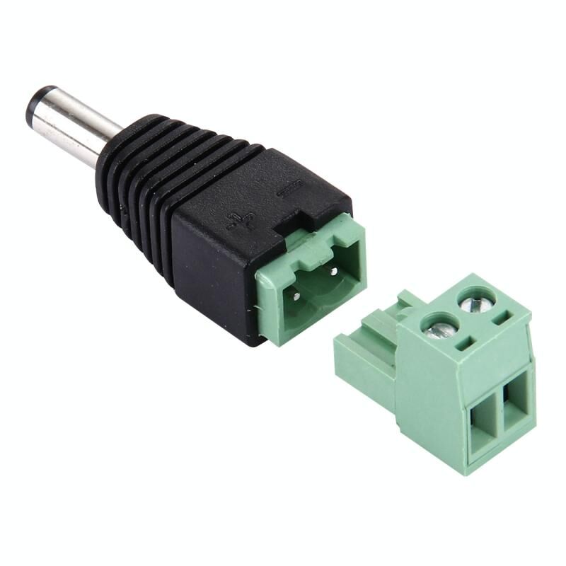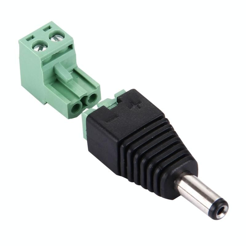 1) The 2.1mm DC Plug features a DC 2.1mm plug and connector with mark polarity.