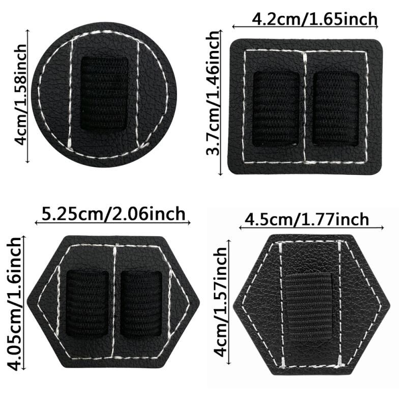 1. Υλικό: δέρμα + ελαστική ταινία 2. Εξαιρετικά στοιχεία ραφής, όμορφα 3. Κατάλληλο για: θήκη στυλό χωρητικής οθόνης για tablet PC, κλιπ στυλό ημερολογίου, φορητός υπολογιστής κ.λπ. 4. Διαστάσεις: στρογγυλό 4cm, εξάγωνο 4 x 4,5cm, ορθογώνιο 4,2 x 3,7cm, διπλό εξάγωνο 5,25 x 4,05cm 5. Βάρος: στρογγυλό 1,6g, εξάγωνο 2g, ορθογώνιο 2g, διπλό εξάγωνο 2,4g
