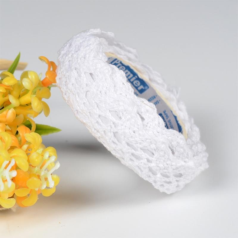 5 PCS Cotton Lace Fabric White Crochet Lace Roll Ribbon Knit Adhesive Tape Sticker Craft Decoration Stationery Supplies(White)