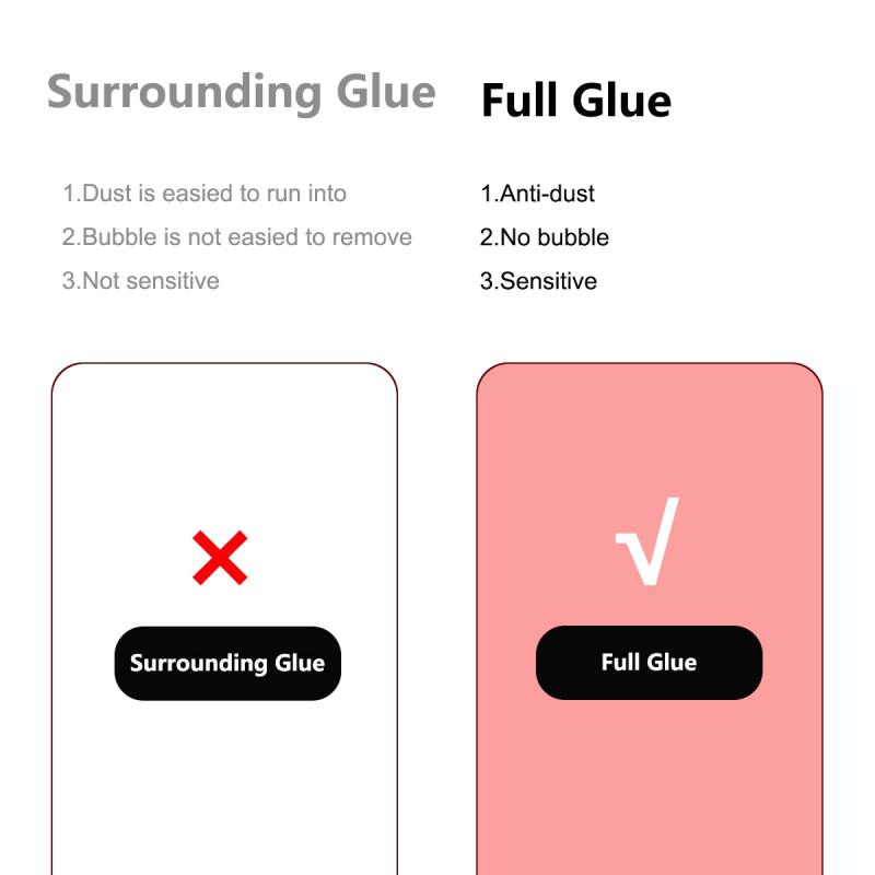 4. Press the center of the glass then adhesive part will spread over all parts smoothly.