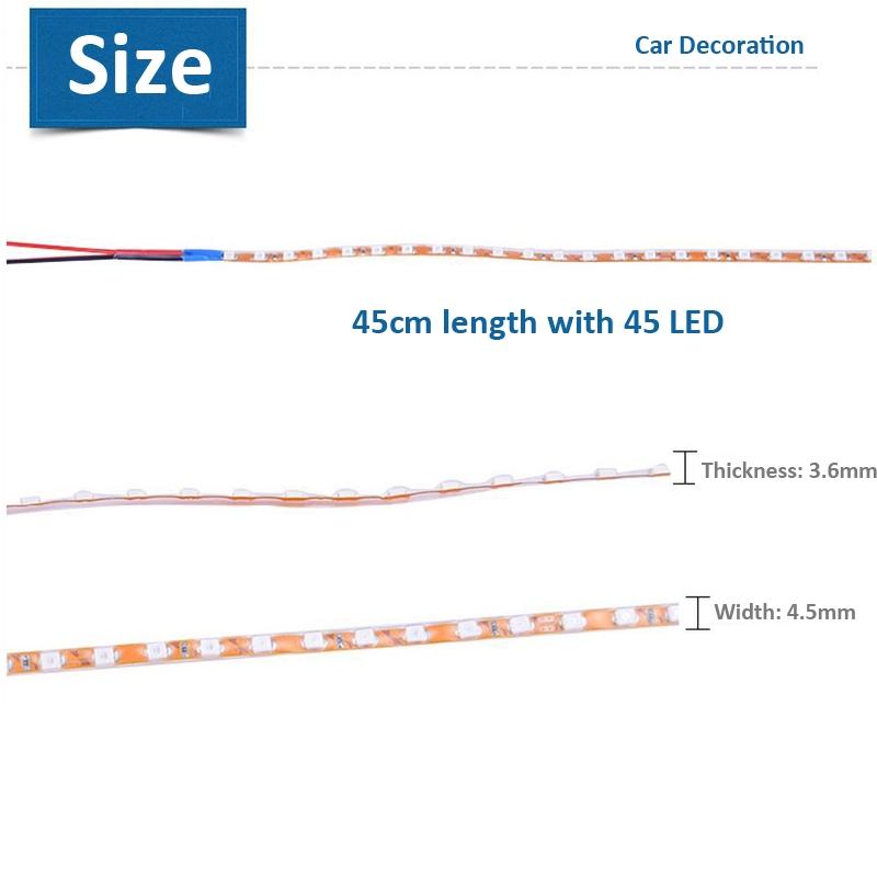 5 PCS Normally-on Style 45 LED 3528 SMD Waterproof Flexible Car Strip Light for Car Decoration, DC 12V, Length: 45cm