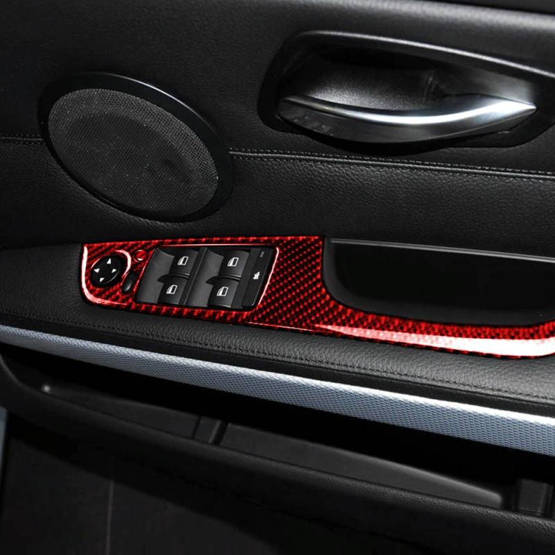 5 PCS Set For BMW 3 Series E90 Carbon Fiber Car Right Drive Window Lift Panel Decorative Sticker, Diameter: 35.8cm (Red)