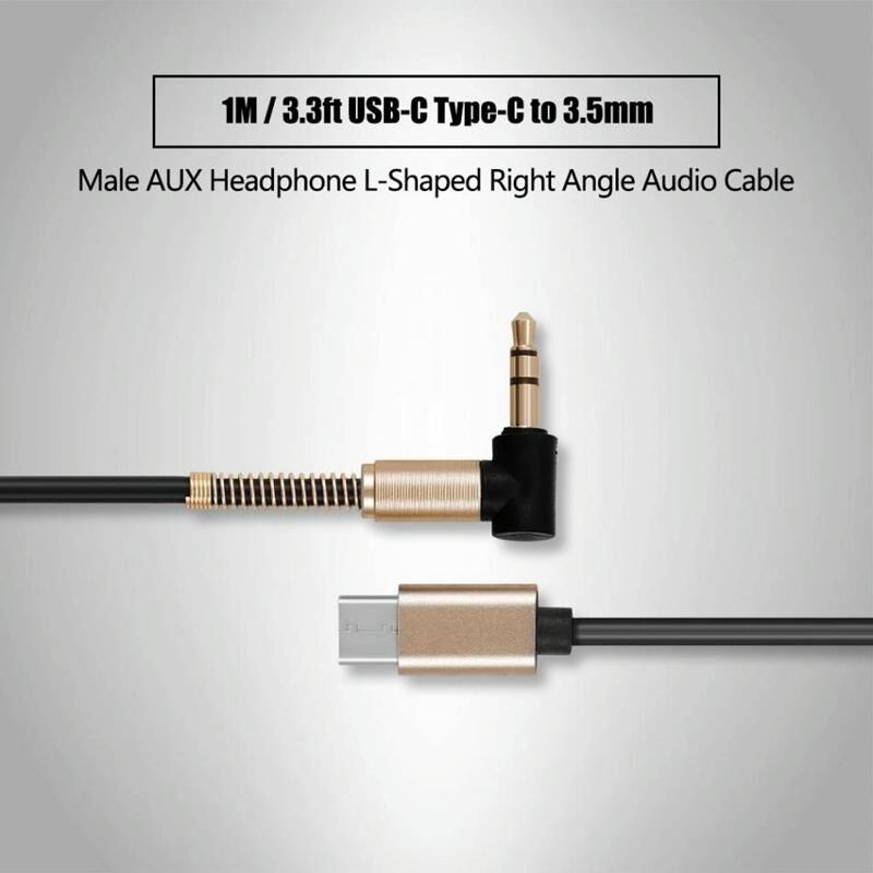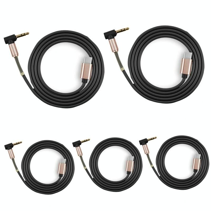 5 Τεμ. Αντάπτορας ήχου με γωνία και ελατήριο Type-c/USB-c σε 3.5mm, Μήκος καλωδίου: 1μ (Μαύρο)