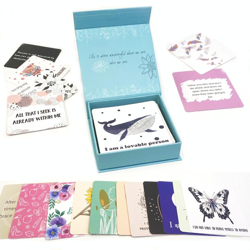 1. 50 uniquely designed positive affirmation cards for encouragement, self-reflection, and daily journaling.