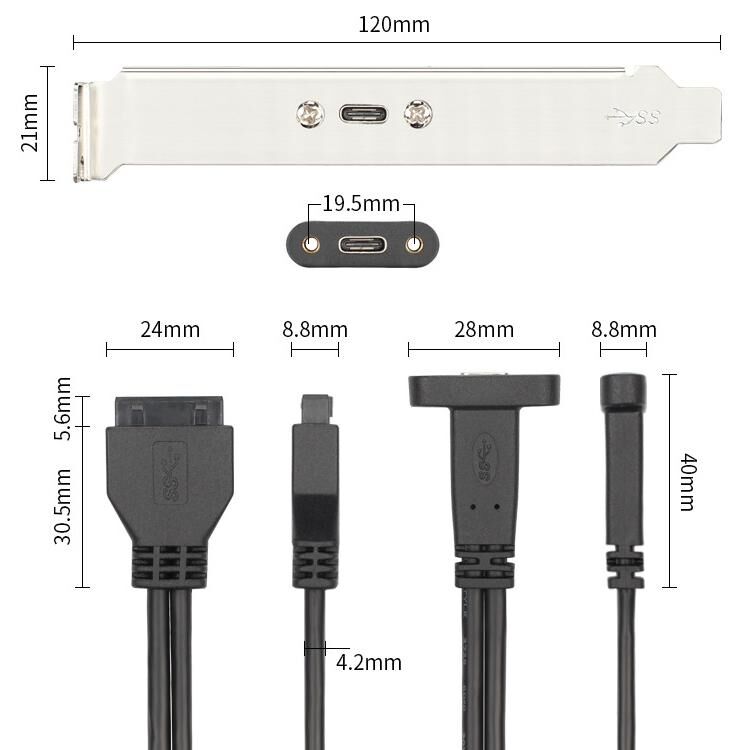 7. Εφαρμογή: Μετατρέπει τη διεπαφή USB3.0 20P της μητρικής πλακέτας σε θηλυκή θύρα USB Type-C, η οποία μπορεί να στερεωθεί στη θέση PCI του πλαισίου μέσω του διαφράγματος, παρέχοντας εκτεταμένη υποστήριξη για τη διεπαφή USB Type-C του κεντρικού υπολογιστή
