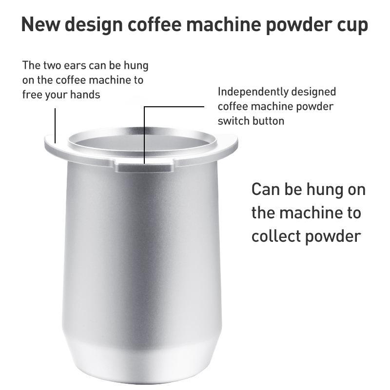 4. Ο αμφίπλευρος σχεδιασμός σας επιτρέπει να κρεμάσετε το δοσομετρικό κύπελλο απευθείας στη μηχανή καφέ, ελευθερώνοντας τα χέρια σας. Ανεξάρτητος σχεδιασμός, πατήστε το κουμπί διακόπτη σκόνης της μηχανής καφέ.