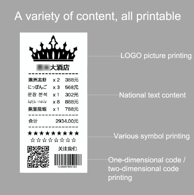 2. Υποστηριζόμενα κείμενα και γραφικά: Κινέζικα, Αγγλικά, αριθμοί, σύμβολα, διαγράμματα, καμπύλες, εικονίδια, προ-αποθηκερωμένοι γραμμωτοί κώδικες