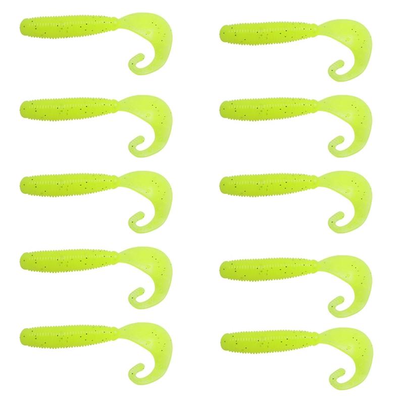 5cm 10pcs /Pack HENGJIA Curved-Tail Soft Dummy Bait Freshwater Fishing Lures(Light Yellow) (HENGJIA)