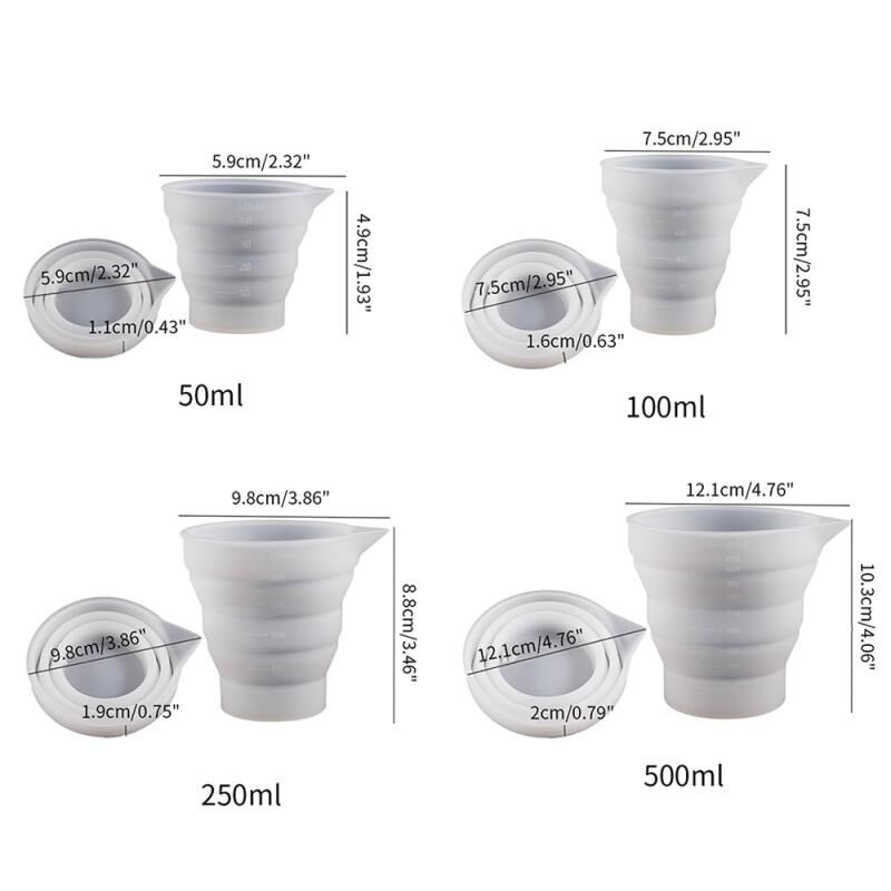 7. Unfolded size: 50ml-5.9 x 4.9cm, 100ml-7.5 x 7.5cm, 250ml-9.8 x 8.8cm, 500ml-12.1 x 10.3cm