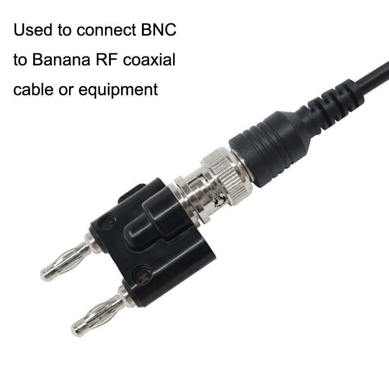 3. Λειτουργία: Η μία πλευρά είναι θηλυκό BNC με εσωτερική οπή και η άλλη πλευρά είναι δύο βύσματα σύνδεσης Banana Male, που χρησιμοποιούνται για τη σύνδεση BNC σε ομοαξονικό καλώδιο ή εξοπλισμό RF Banana