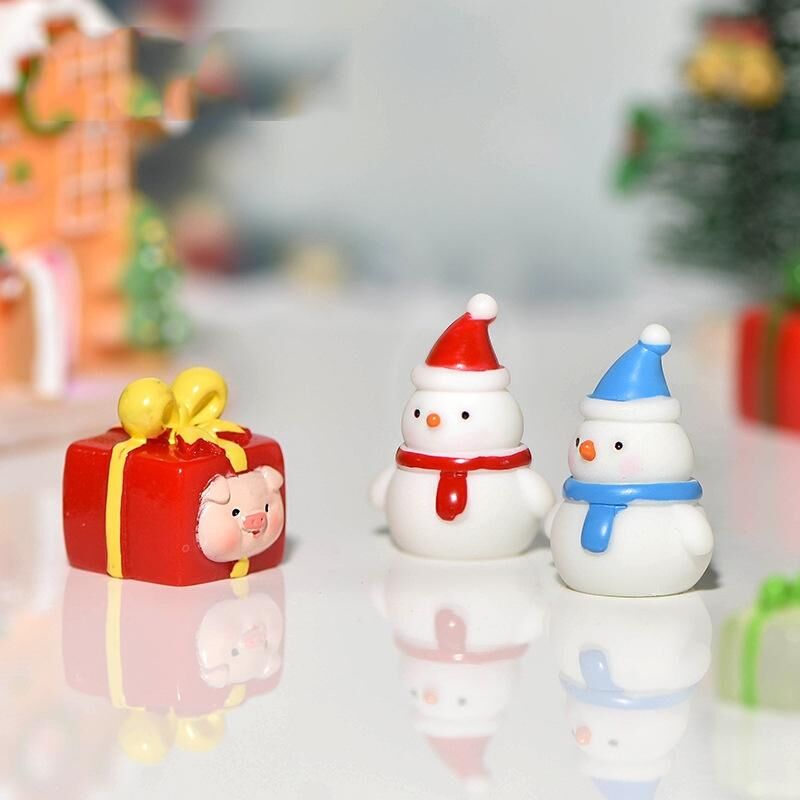 5 τεμ. Χριστουγεννιάτικα Διακοσμητικά Μικροτοπίων Χιονισμένου Τοπίου, Χριστουγεννιάτικο Διακοσμητικό Ρητίνης, Στυλ: No.9 Γουρουνάκι Κόκκινο Πράσινο Δώρο Κουτί