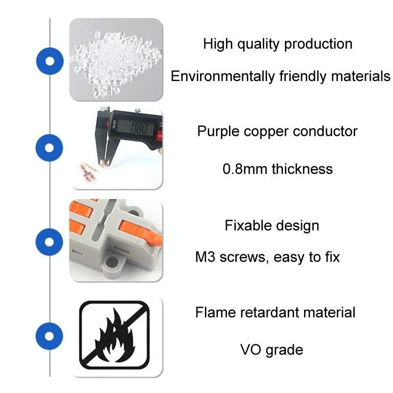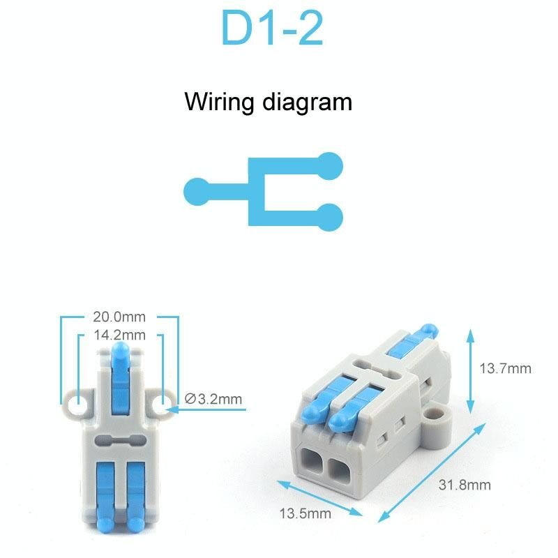 5 τεμάχια D1-2 τύπου ώθησης μίνι καλώδιο σύνδεσης Splitter γρήγορης σύνδεσης τερματικού μπλοκ (μπλε)