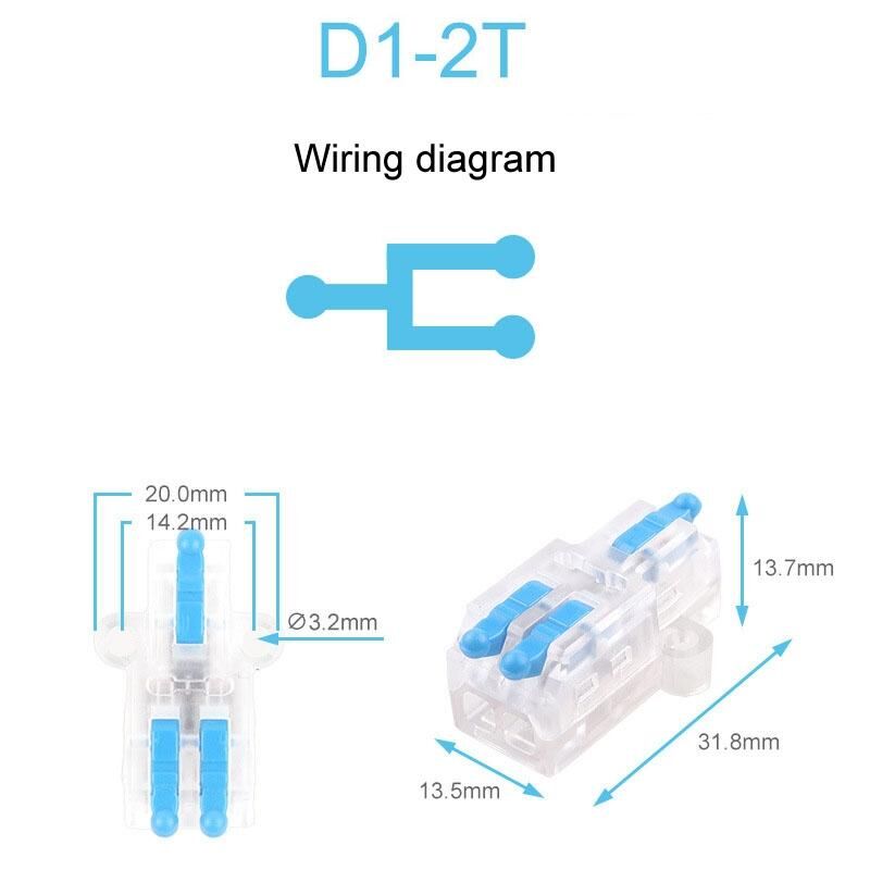 5pcs D1-2T Τύπος ώθησης μίνι καλώδιο σύνδεσης Splitter γρήγορη σύνδεση τερματικού μπλοκ (μπλε)