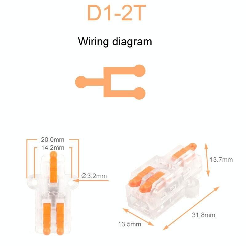 5pcs D1-2T Τύπος ώθησης μίνι καλώδιο σύνδεσης Splitter γρήγορη σύνδεση τερματικού μπλοκ (πορτοκαλί)