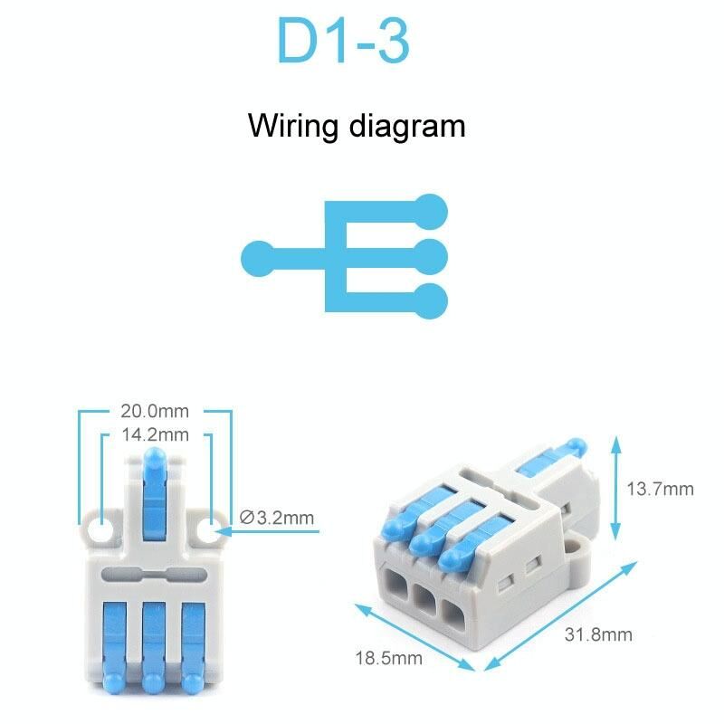 5 τεμάχια D1-3 τύπου ώθησης μίνι καλώδιο σύνδεσης Splitter γρήγορης σύνδεσης τερματικού μπλοκ (μπλε)