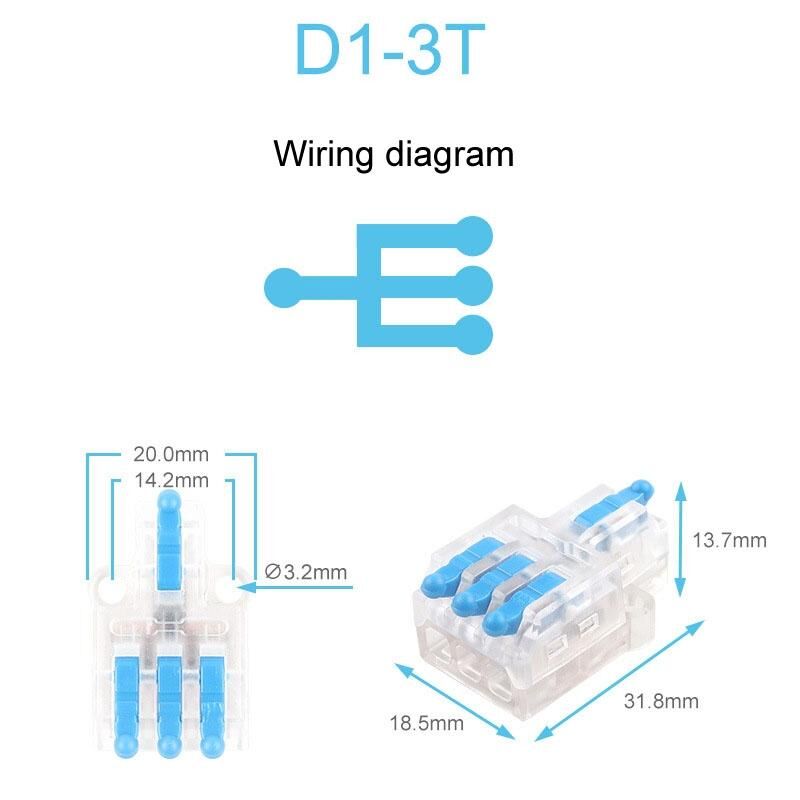 5pcs D1-3T Τύπος ώθησης Μίνι καλώδιο σύνδεσης Splitter γρήγορης σύνδεσης τερματικού μπλοκ (μπλε)
