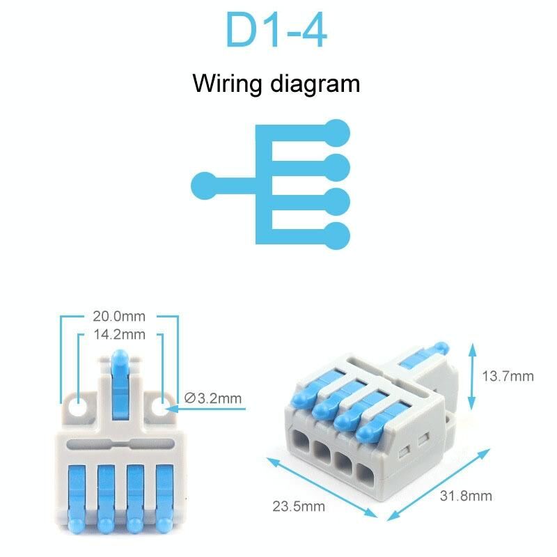 5 τεμάχια D1-4 Μίνι καλώδιο σύνδεσης τύπου ώθησης Splitter γρήγορης σύνδεσης τερματικού μπλοκ (μπλε)