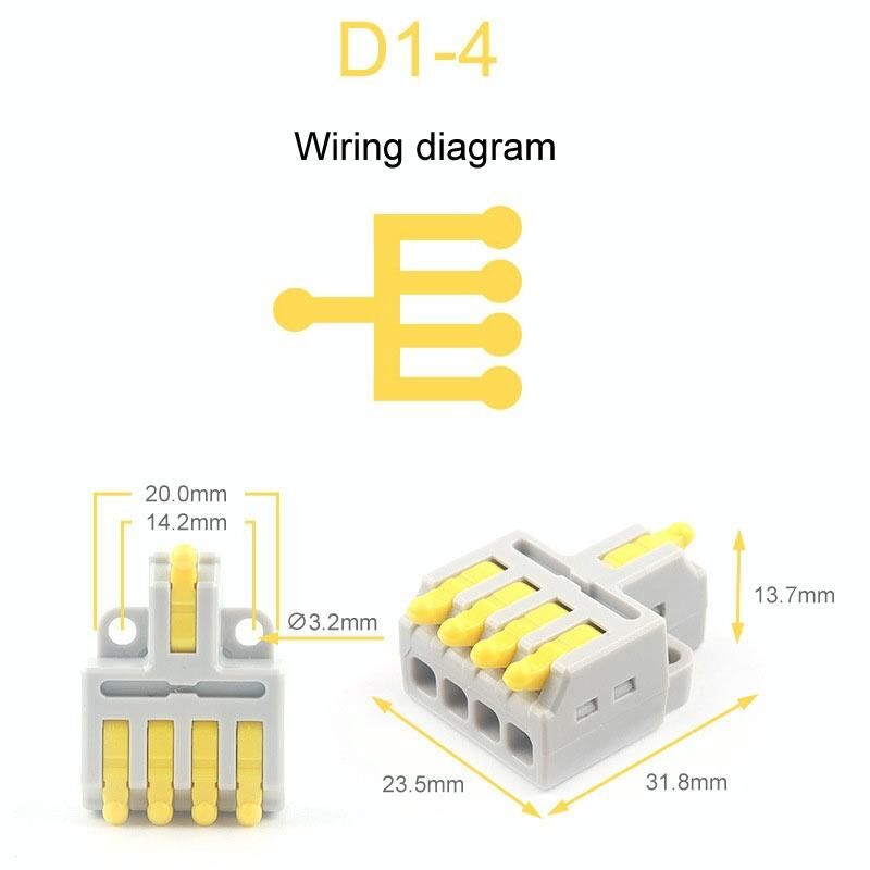5 τεμάχια D1-4 τύπου ώθησης μίνι καλώδιο σύνδεσης Splitter γρήγορης σύνδεσης τερματικού μπλοκ (κίτρινο)