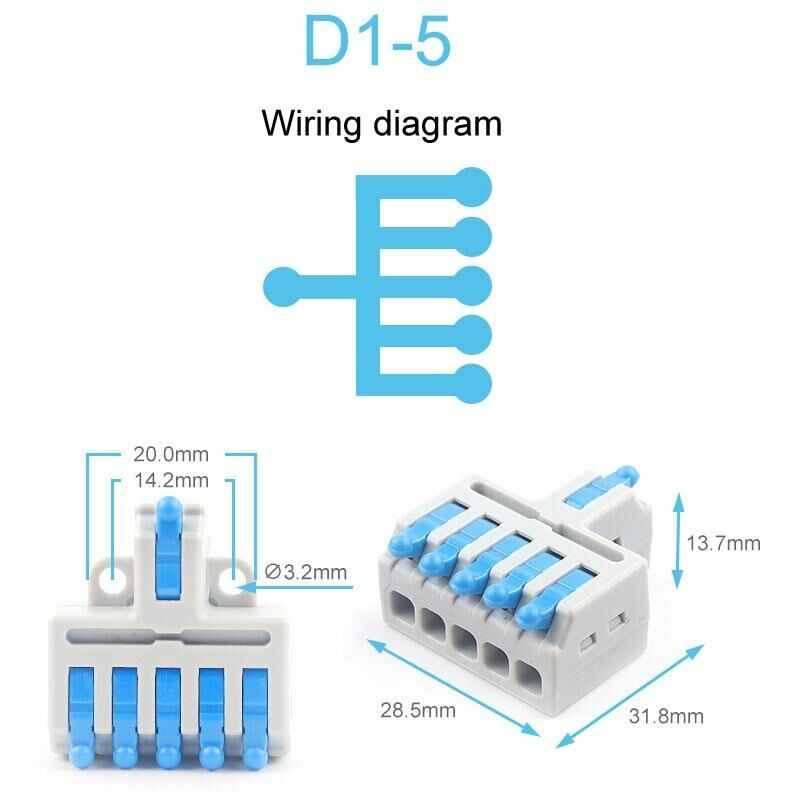5pcs D1-5 Τύπος ώθησης μίνι καλώδιο σύνδεσης Splitter γρήγορης σύνδεσης τερματικού μπλοκ (μπλε)