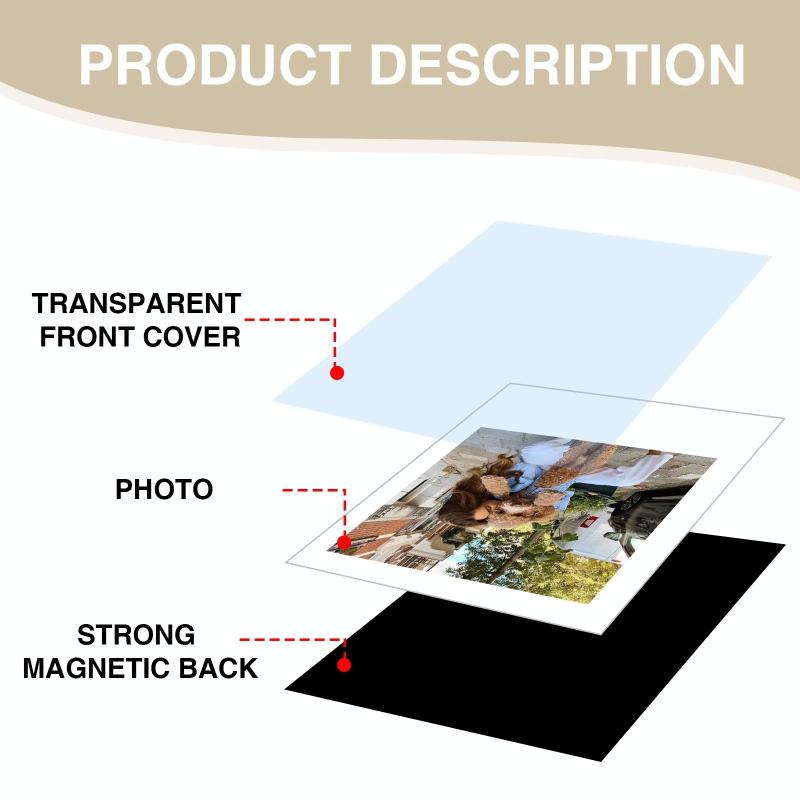 1. This magnetic photo pocket can be attached on most metal surfaces, convenient for you to use.