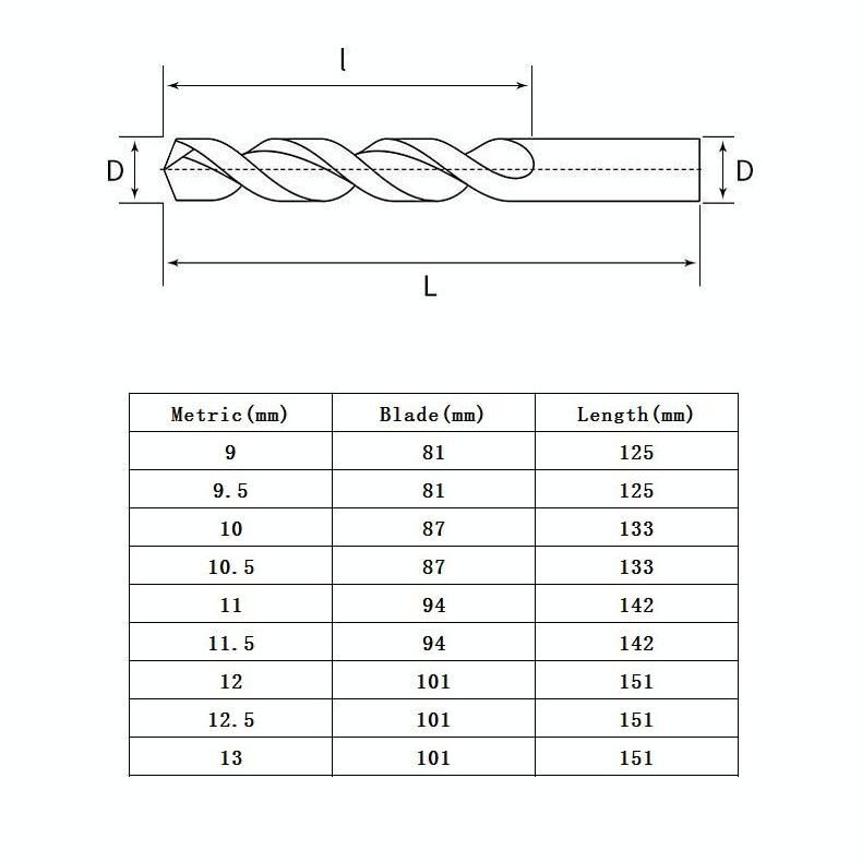 10. Model: diameter 9.0mm: blade length 81mm, total length 125mm; diameter 9.5mm: blade length 81mm, total length 125mm; diameter 10mm: blade length 87mm, total length 133mm; diameter 10.5mm: blade length 87mm, total length 133mm; diameter 11mm: Blade length 94mm, total length 142mm; diameter 11.5mm: blade length 94mm, total length 142mm; diameter 12mm: blade length 101mm, total length 151mm; diameter 12.5mm: blade length 101mm, total length 151mm; diameter 13mm: blade length 101mm, total length 151mm