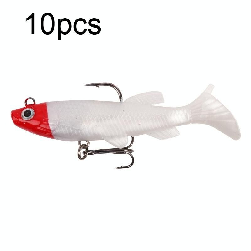 5pcs Roadrunner Soft Lures Leadheads Luminous Lures (Κόκκινο λευκό T Tail)
