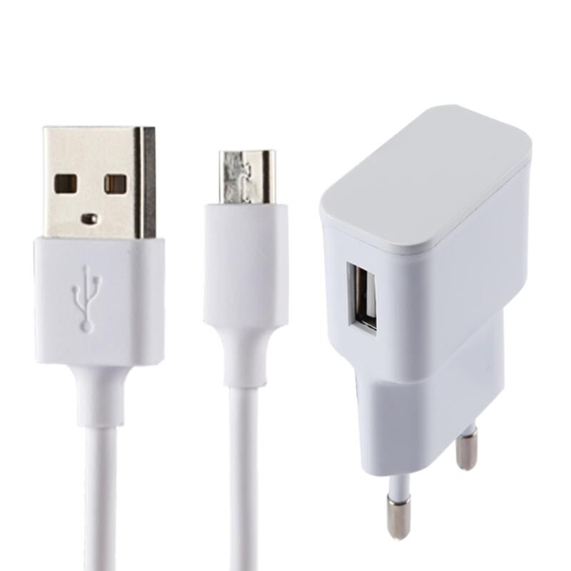 Φορτιστής USB 5V 2.1A με Έξυπνη Αναγνώριση, με Καλώδιο Φόρτισης USB σε Micro USB 1m, Ευρωπαϊκό Βύσμα, για Samsung / Huawei / Xiaomi / Meizu / LG / HTC και άλλα Smartphones (Λευκό)