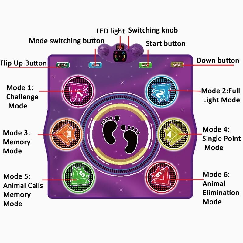 3. 6 modes of play: Challenge Mode / Full Light Mode / Memory Mode / Single Point Mode / Animal Calling Memory Mode / Animal Elimination Mode