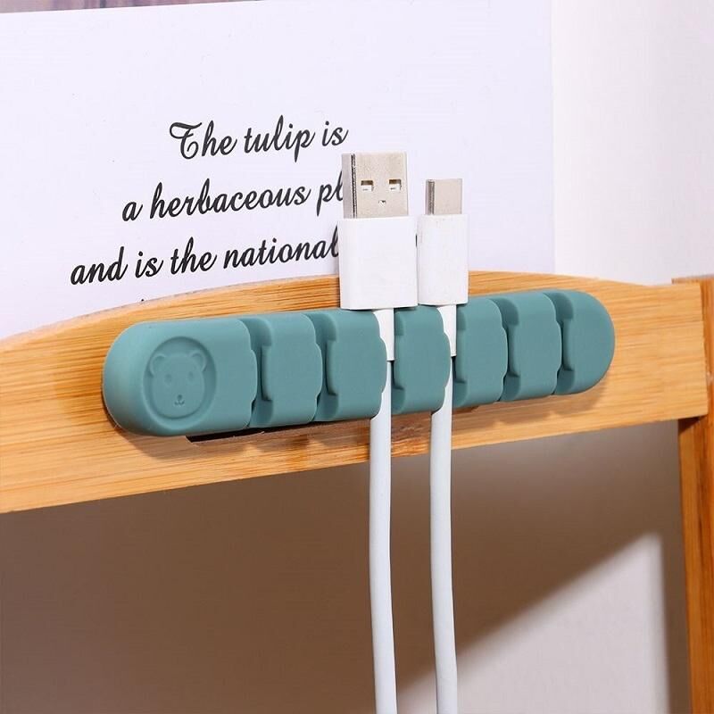 6 Holes Bear Silicone Desktop Data Cable Organizing And Fixing Device(Dark Green)