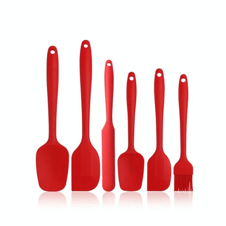 6 σε 1 σπάτουλα σιλικόνης βαθμού τροφίμων σπάτουλα κέικ σπάτουλα λαδιού βούρτσα ανάμειξης μαχαίρι ψήσιμο μαγειρικά σκεύη σετ (κόκκινο)