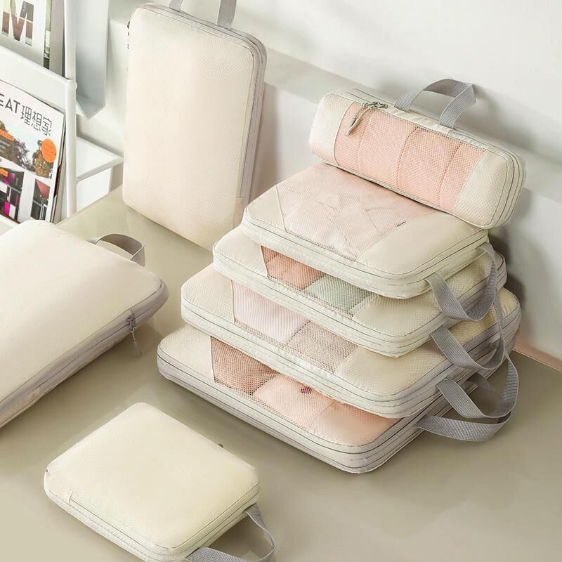 6 In 1 Mesh Compressed Travel Organizer Bag Luggage Clothes Shoes Toiletries Storage Bag(Beige)